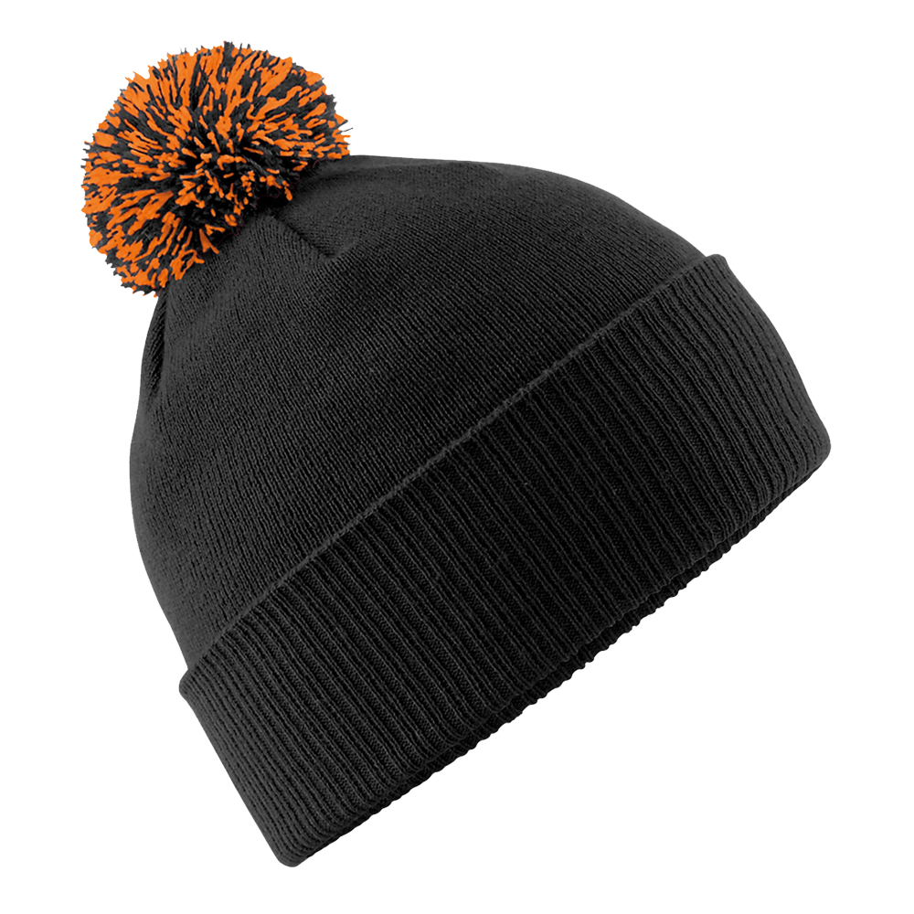 100% Soft-touch acrylic, Double-layer knit, Two-tone pom pom, Dual style cuffed or slouch